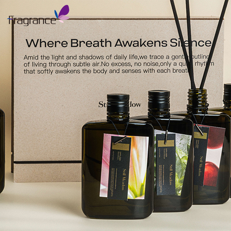 Sistemas de lujo del difusor de láminas del palillo de la fibra de la botella de vidrio de la etiqueta privada 270ml de la fragancia casera