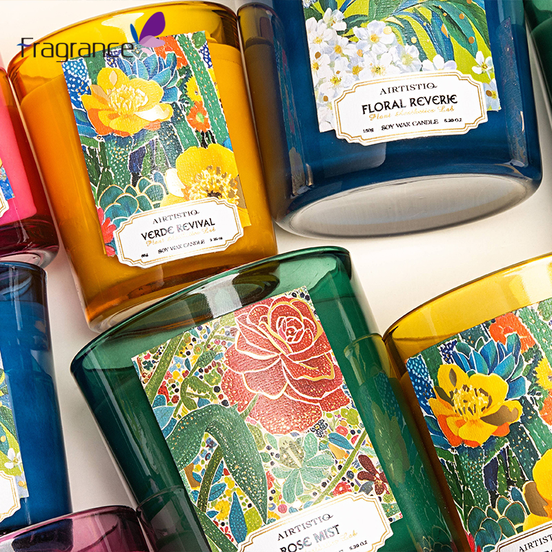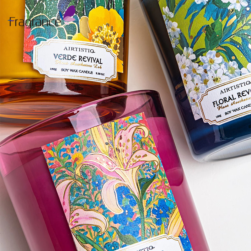 Velas perfumadas de cristal coloridas modificadas para requisitos particulares al por mayor 150G del tarro de cristal del olor casero de lujo de la fragancia